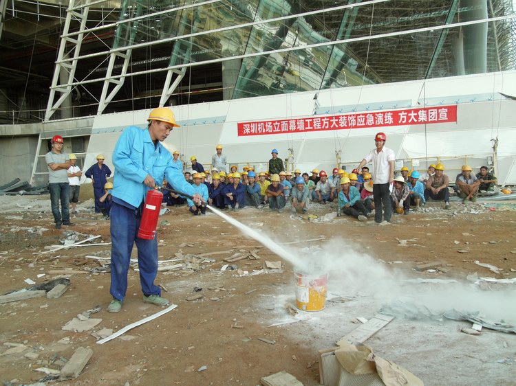 7月3日下午,为了检验今年全国“安全生产月”的成果和深圳机场T3航站楼幕墙工程项目的安全生产应急能力,方大集团、深圳市方大装饰工程有限公司组织开展了为期半天的幕墙施工防火、防高坠、防坍塌安全事故应急演练。集团公司安全主管尚清波、装饰公司安全部经理丁志刚、T3航站楼项目部副经理高晶参与现场演练组织指挥。这次安全应急演练,检验了现场管理和施工人员面对紧急情况的应急处置能力和水平,提高了大家的安全应急意识和水准,整个演练过程衔接到位,收到了良好的预期效果。