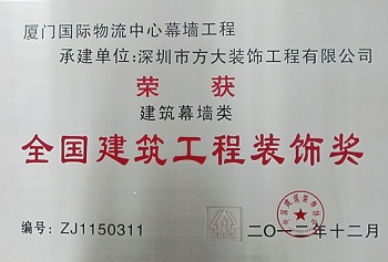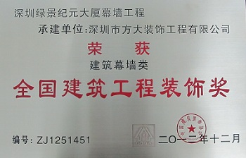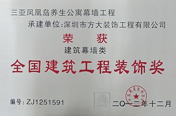 近日,中国建筑装饰协会“2011~2012年度全国建筑工程装饰奖”评选结果揭晓,方大集团全资子公司深圳市方大装饰工程有限公司承建的深圳绿景纪元大厦幕墙工程、深圳高新区软件大厦幕墙工程、三亚凤凰岛养生公寓幕墙工程、厦门国际物流中心幕墙工程等四项高端幕墙工程荣获“2011-2012年度全国建筑工程装饰奖”。