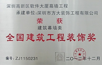 “全国建筑工程装饰奖”是国家住房和城乡建设部批准设立的中国建筑装饰行业的最高荣誉奖,由中国建筑装饰协会主办评选,每两年评选一次。此次深圳市方大装饰工程有限公司一举获得四项“全国建筑工程装饰奖”,突显了方大幕墙在建筑装饰行业设计与施工水平等方面的优势,反映了方大装饰公司在企业管理、技术实力、质量保证体系等方面的实力。