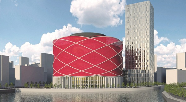 武汉中央文化区汉秀剧场由万达集团投资建设,项目位于武汉东湖,是国内第一个水秀表演场所,造型酷似灯笼,建筑外墙由内、外两层幕墙构成,内层为直立锁边系统及玻璃幕墙系统,外层由56榀不规则轮辐钢结构及18400个定位均不相同的中国红碟片构成灯笼皮装饰。