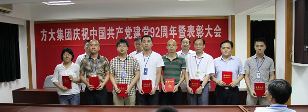 作为集团公司党委第一任书记,熊建明董事长深情回顾了党的92年发展历程和方大集团走过的22年发展历程。他指出,方大集团自1991年成立以来,一直坚持“科技为本,创新为源”的经营理念,公司不断发展壮大,公司的节能幕墙系统及材料产业、地铁屏蔽门产业、LED产业都发展成为行业的领先者,共产党员在方大集团的发展壮大中起了模范带头作用。他号召公司各级党组织和广大党员要以受表彰的单位和个人为榜样,认真学习他们的先进事迹,继续充分发挥基层党组织的核心作用和共产党员的先锋模范作用,为方大集团的发展做出更大的贡献!