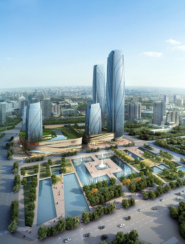 昆明西山万达广场是万达集团打造的商业综合体项目,享有全国万达商业最高等级,两栋高316米的甲级写字楼是昆明第一高双塔,也是迄今万达历史上的第一高楼,同时也是万达集团第100个万达广场项目,其所处区域正好是昆明泛亚金融产业中心园区核心位置。外形设计构思是从昆明市市花-山茶花演化而来,从高空向下俯瞰是一朵含苞待放的山茶花,立面为向上盛开的花瓣形状。项目主要采用单元式玻璃幕墙、玻璃肋点支撑幕墙、石材幕墙、框架式玻璃幕墙等系统。