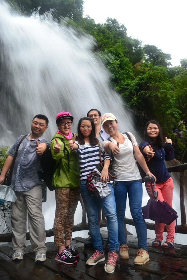 活动当天一早就开始下起了大雨,大家冒雨在公司集合,乘大巴向白水寨出发,这场大雨也意味着此次活动将是一次特别的生日经历。大家一路欢声笑语抵达了白水寨景区。白水寨果然名不虚传,瀑布从山顶喷薄而落,不禁让人想到李白 “飞流直下三千尺,疑是银河落九天”的名句,景区内可谓“五步一小景,十步一大景”,各种景色让大家目不暇接,当大家走在素有“天南第一梯”的9999级的登山步径上,可以在木阶之间清晰看到脚下流淌的湍急水流,刺激惊险。