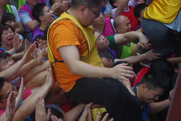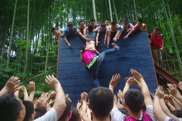 “团队动力圈”和“毕业墙”科目带给我们更多的是震撼、担当和感动。“一个都不能少”这是学员在分享中提到的,团队离不开个人,个人更需要团队强大的力量支持。“让我来撑起你”这是一种责任和承诺,“谢谢你们让我当墩子”这是互相的信任和支持,“我的后背都交给你,来吧”、“你去休息换我来”、“注意安全”、“保护保护”……感动我们的是一句句承诺和信任,是一双双保持45度向上姿势的手掌,是一个个泛红的眼圈,我们奉献于团队,我为我的团队感到骄傲和自豪。