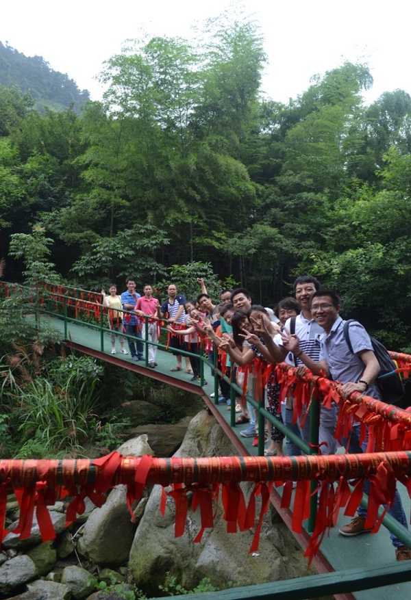 整个活动,27个人的团队始终被舒适、放松、和谐的氛围萦绕着。第一个活动目的地是著名的东林寺。东林寺建于东晋大元九年(384年),为庐山上历史悠久的寺院之一。员工们在这里参拜祈福,为家人朋友祈求平安。接下来的活动是前往东林大峡谷,大家领略了佛、道、儒三家文化发祥地的特有魅力,游玩虎跑泉、虎溪桥、虎溪、洞天福地、匡续祠、桃花源、陶渊明读书台、冰川遗址——冰臼群、牯牛潭瀑布等景点,品味苏东坡“不识庐山真面目 只缘身在此山中”的梦幻峡谷。然后再前往东林大峡谷漂流,由于峡谷落差大,九曲十八弯,波急浪涌,一路穿峡谷,渡险滩,过乱石,越急流,转漩涡,皮筏冲在浪尖,两边峡谷幽深,绿树成荫,让大家享受到了在峡谷冲浪的另类感受。最后一站是参观世界最高阿弥陀佛铜像——48米高的东林大佛,一尊金灿灿的大佛屹立在高山之巅,东林大佛整体造型吸收了龙门石窟等盛唐佛像特点,是中国唯一的露天阿弥陀佛铜像。